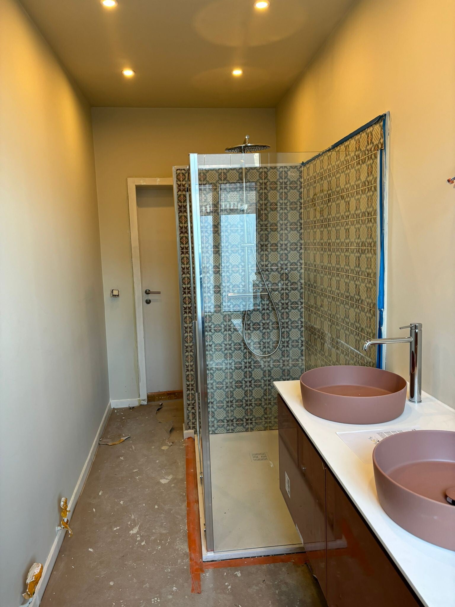 Rénovation de salles de bain : modernisation, carrelage, plomberie, sanitaires.